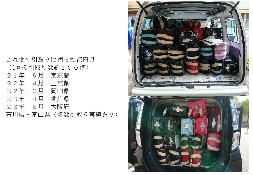 ランドセル調達に向けSNS等で繋がりや面識があり、これまでにも引取り実績のある全国の