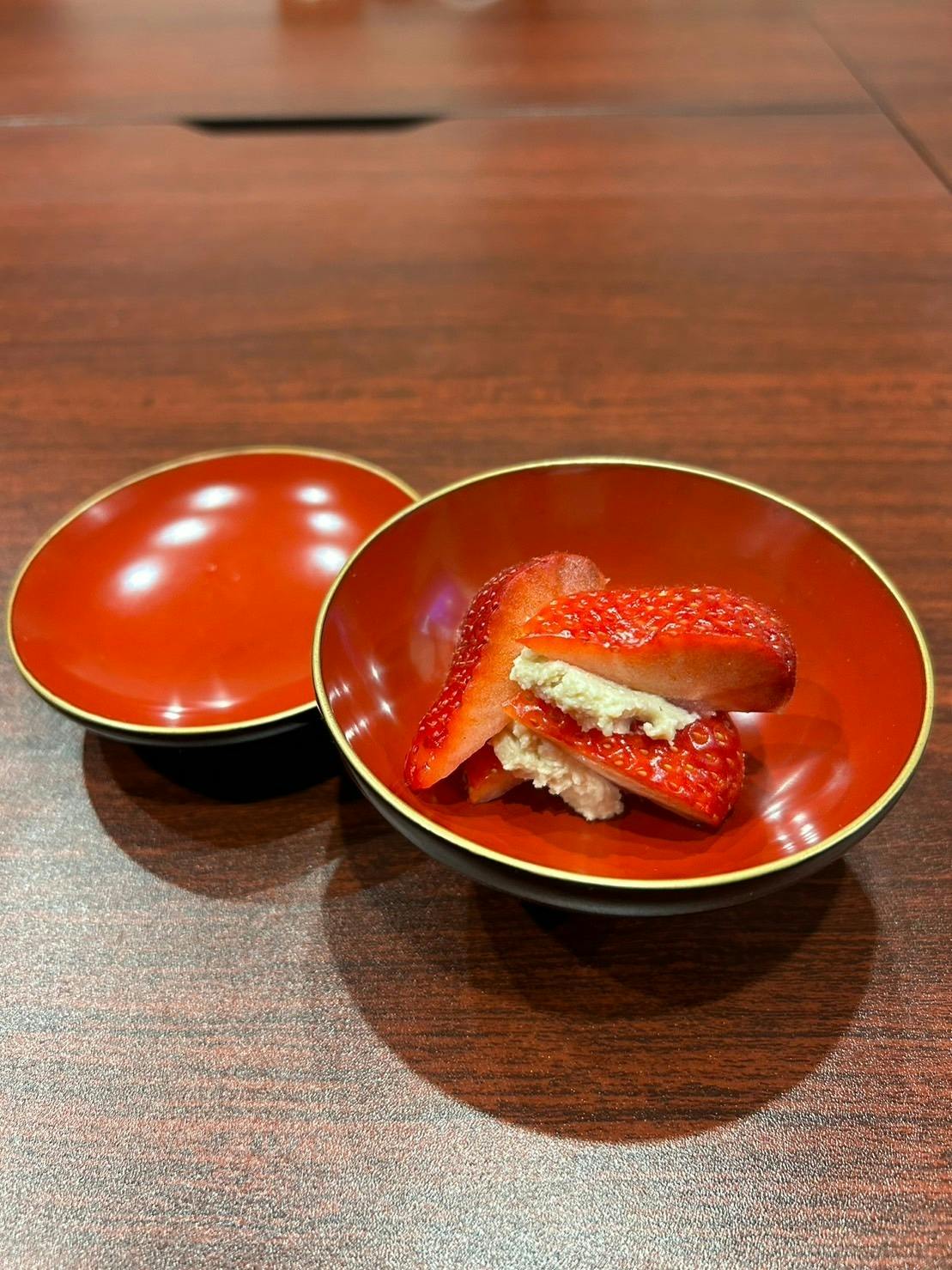 2024/02/13 14:431月に間借りさせて頂ききました際のお料理です!雲子の餡かけ。【説明】橙釜で仕上げました!橙を、くり抜き橙を直接火に当てグツグツと炊いてきた一品です!橙から出てくる僅かな苦味が食欲をそそり梅肉で爽やかに仕上げたお料理です!お客様のもとに届くまでに冷めないよう紙蓋ではなく大根を薄く桂剥きにして蓋に見立てました!料理屋ならではの手間をかけ更にこれを2枚にして間に松葉を入れて蓋にしてあります。 もっと見る
