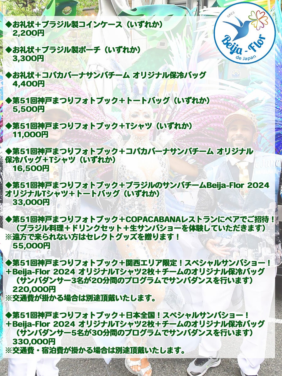 しかし、私たちはこの費用を支払うことで、皆さんに本場ブラジル仕込みの私たちのサンバパレードで音楽やダンスを聞いて見ていただき、一緒に踊ったり楽しんだりして元気をだしてもらいたいと思っています。
