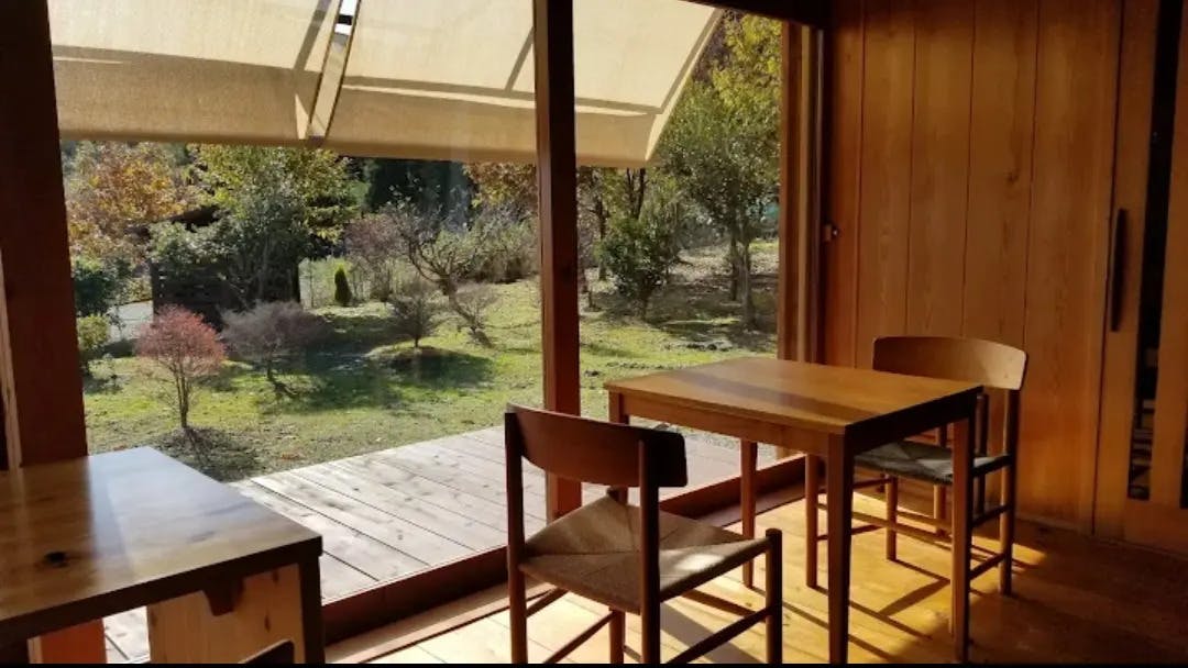 Cafe 結はそんな木工職人の父が自らの手で建てたセルフビルドのお店。店内の机や椅子、木皿やカトラリーなどすべてこだわった手作りのものであり、温かみがあります。里山の風景が広がる立地で非日常を味わえる空間としてテレビや雑誌などのメディア掲載もあり遠方からの来店も多くあります。Cafeを利用されたお客様からは店内で使っている机や椅子などの注文があったり、木工のギャラリーを見学後にはCafeでのんびり過ごされるお客様がいたりとそれぞれの強みを生かし、相乗効果を生んできました。