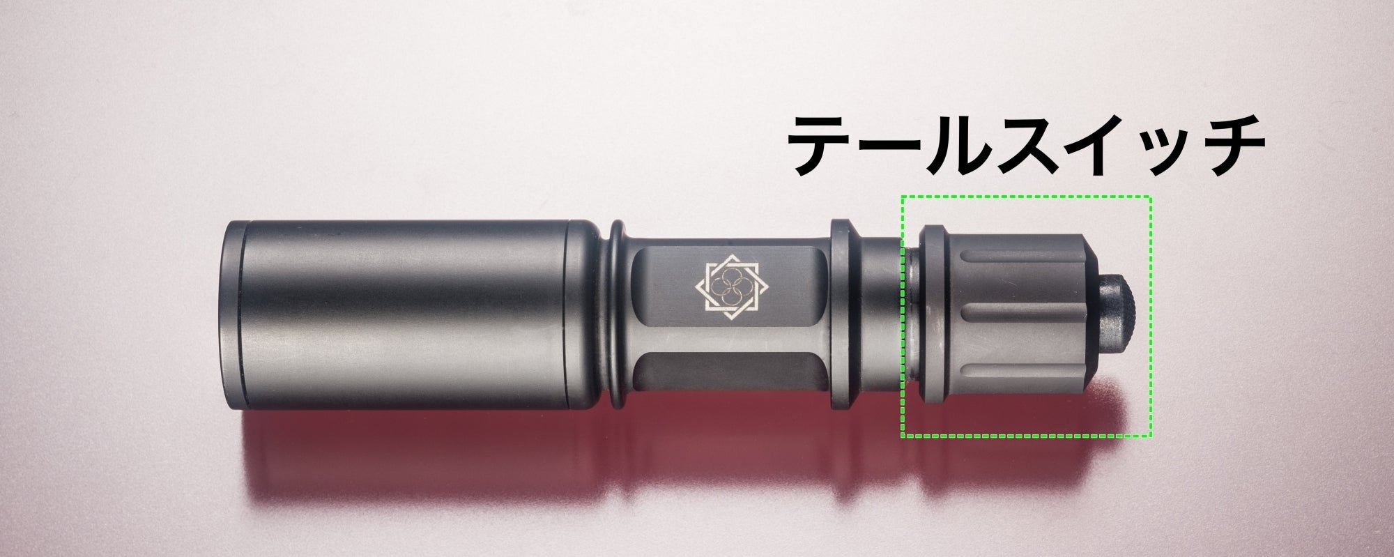 タクティカルライトを翻訳すると「戦術ライト」です。その特徴は警察や自衛隊が戦術的に使用しやすい光量・光角に調整された、頑丈な高性能ライトであり、その多くは即応性を重視したテールスイッチを採用しています。