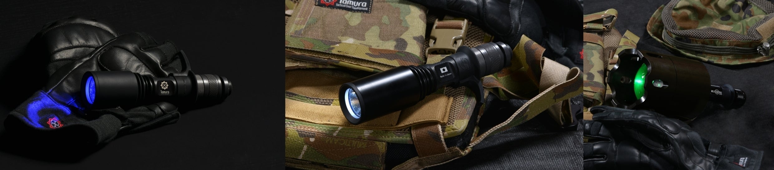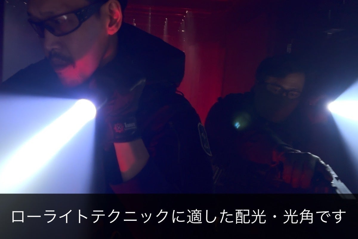 など様々で、殆どの現場においてタクティカルライトが必要不可欠である事を知り、それ以降は数えきれない程のライトを試し、ロウライトテクニックの研究をしてまいりました。