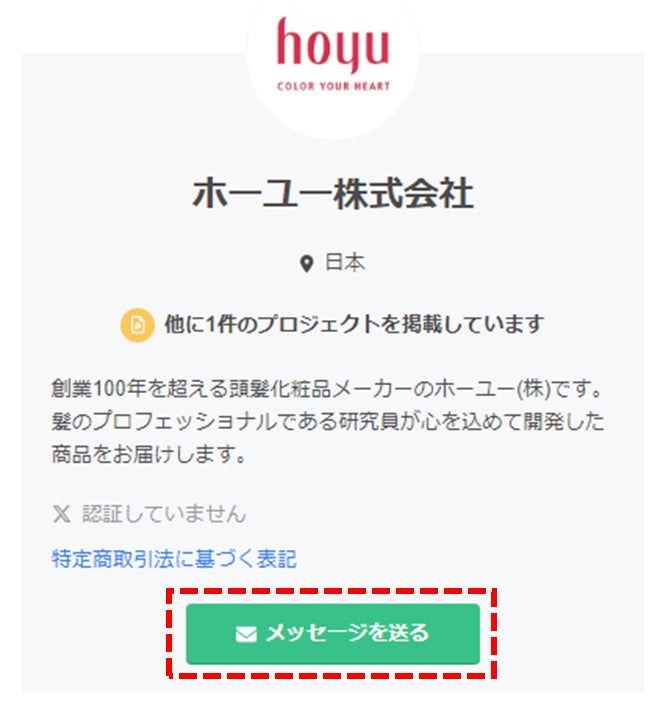 CAMPFIREのメッセージ機能(下記図の赤枠内の緑ボタン)を