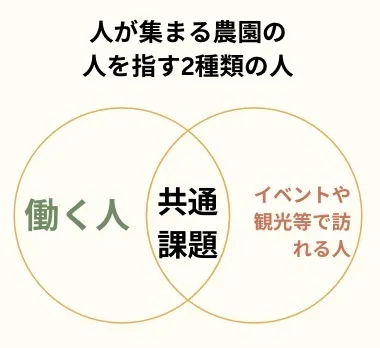 このプロジェクトで実現したい"人が集まる農園"にする為に2種類の人にとって快適な環境整備を行うべきだと考えました。