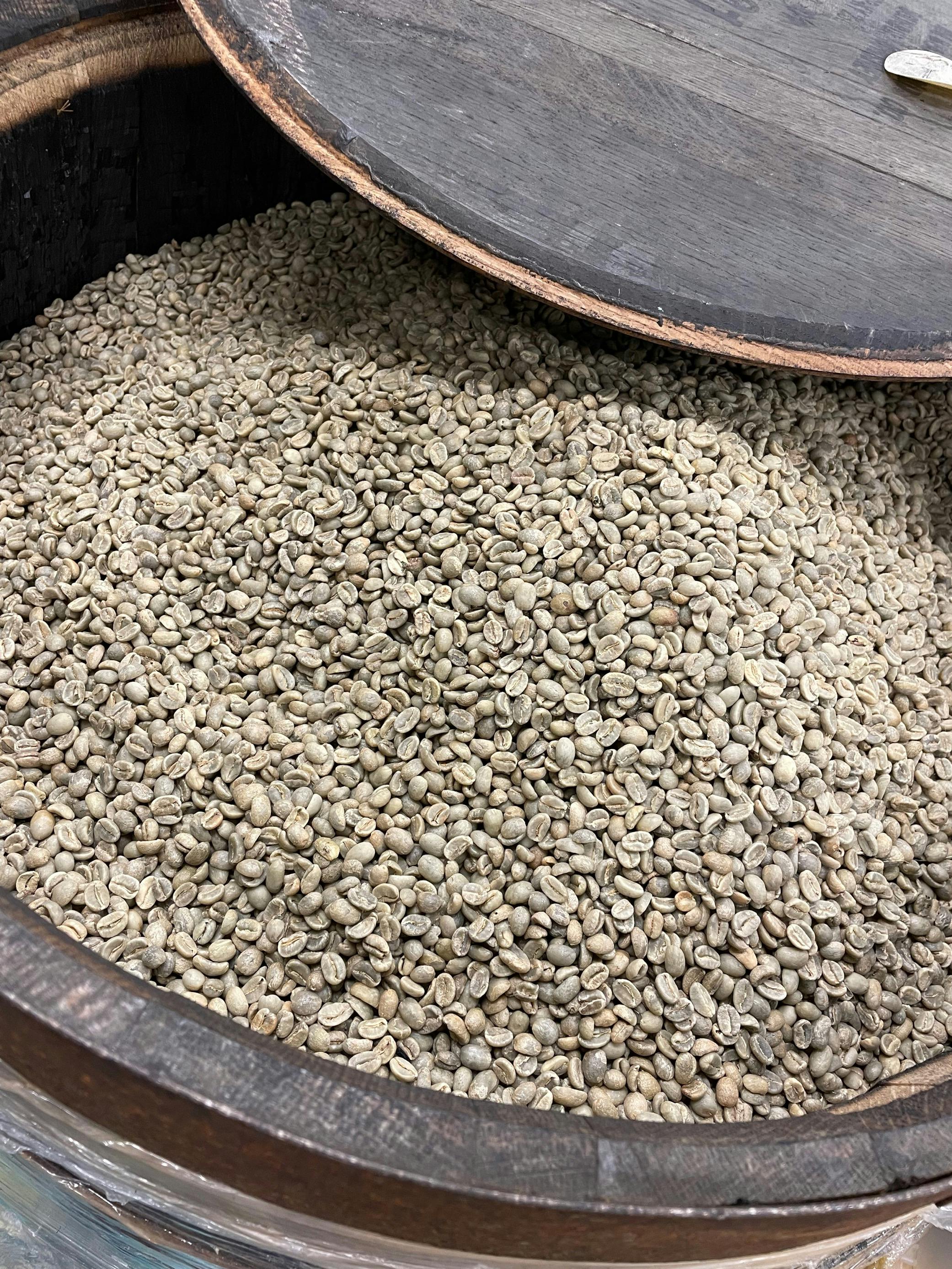 このコーヒーの特徴は、ドリップする際に立ち上る豊かな香りと、後味の余韻に現れます。ふわっと空間に広がる香りと樽での熟成がもたらす複層的な味わいをお楽しみいただけます。