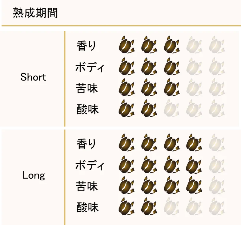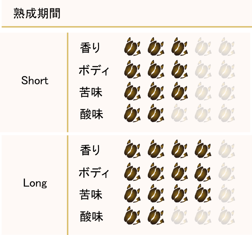 熟成期間が短い商品は、ふんわりとウイスキーの香りが漂うコーヒーをお試しいただきたい方や、普段ウイスキーはお飲みにならない方にお勧めです。