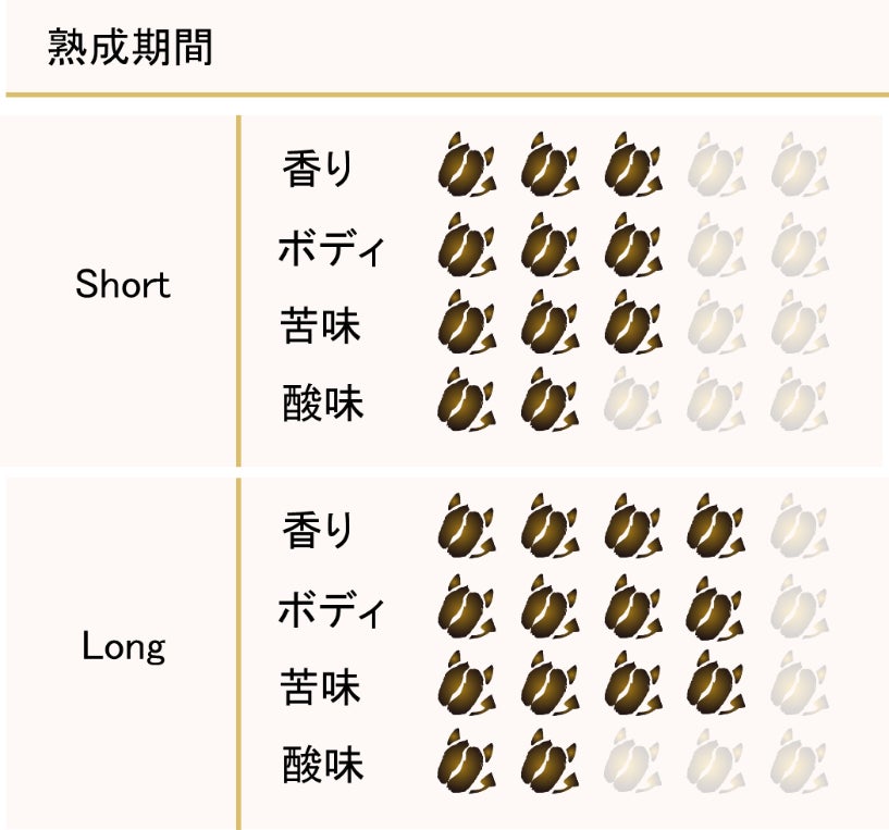熟成期間が短い商品は、ふんわりとウイスキーの香りが漂うコーヒーをお試しいただきたい方や、普段ウイスキーはお飲みにならない方にお勧めです。