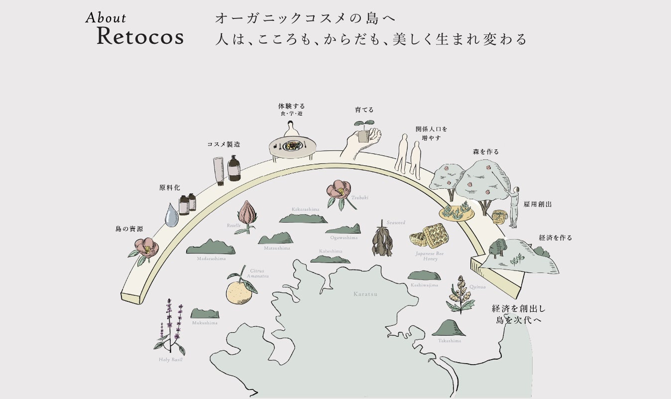 その後、化粧品の原料となる素材を探すため、佐賀県唐津市の島々を訪れたのが、島との出会いのきっかけでした。