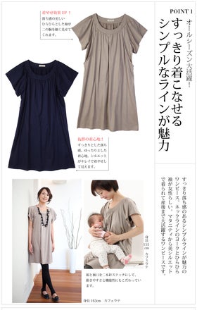 また、ふんわり広がるシルエットなので、マタニティの頃から着られて、臨月の丸いお腹もふんわり優しく包み込んでくれます。