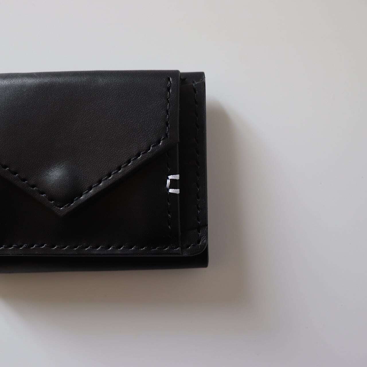 こちらのお財布はデザインにもこだわりシンプルながら他とは違う唯一無二のデザインにするため、一点一点手作業でお作りし、最後の仕上げにホワイトのステッチを入れて仕上げています。