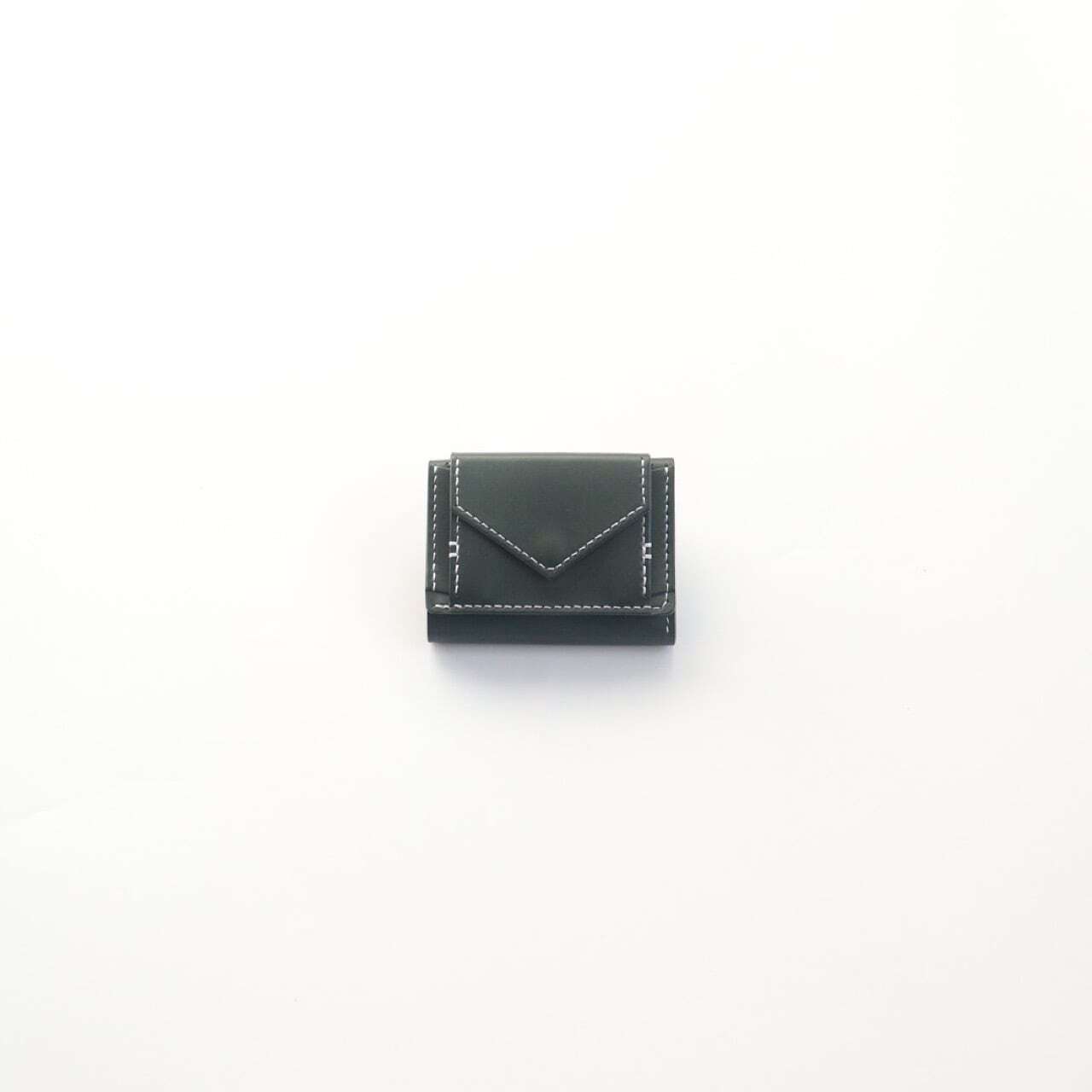 革のお色とステッチのお色で明暗がはっきりと表れるグリーンカラー。