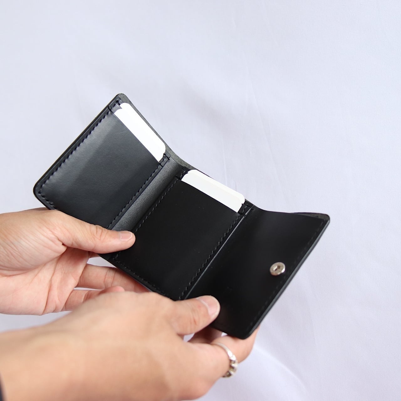 - ミニマムウォレットなのでポケットにも引っかかることなくスムーズに収納できます。
