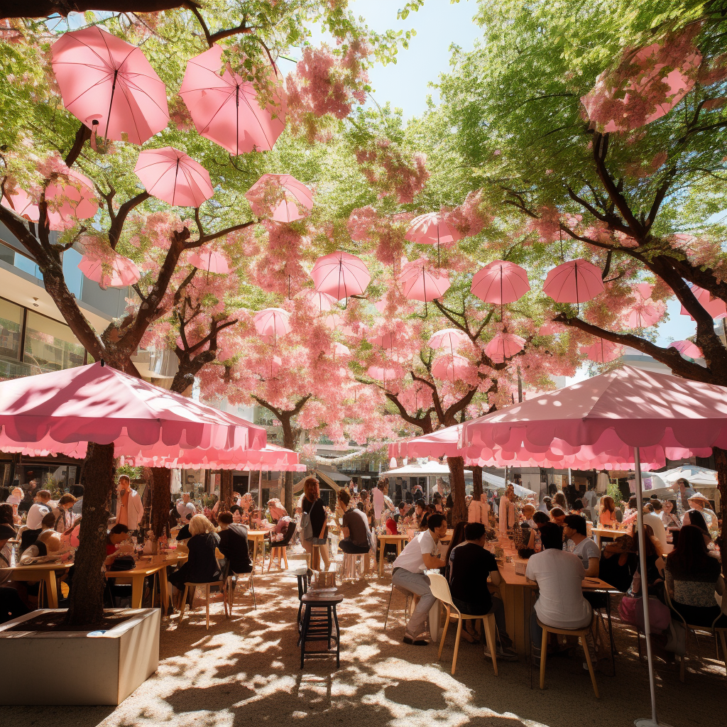 その会場に見上げればピンク色の景色が広がり、まるで満開の桜の下にいるような会場づくりをしたいと考えています