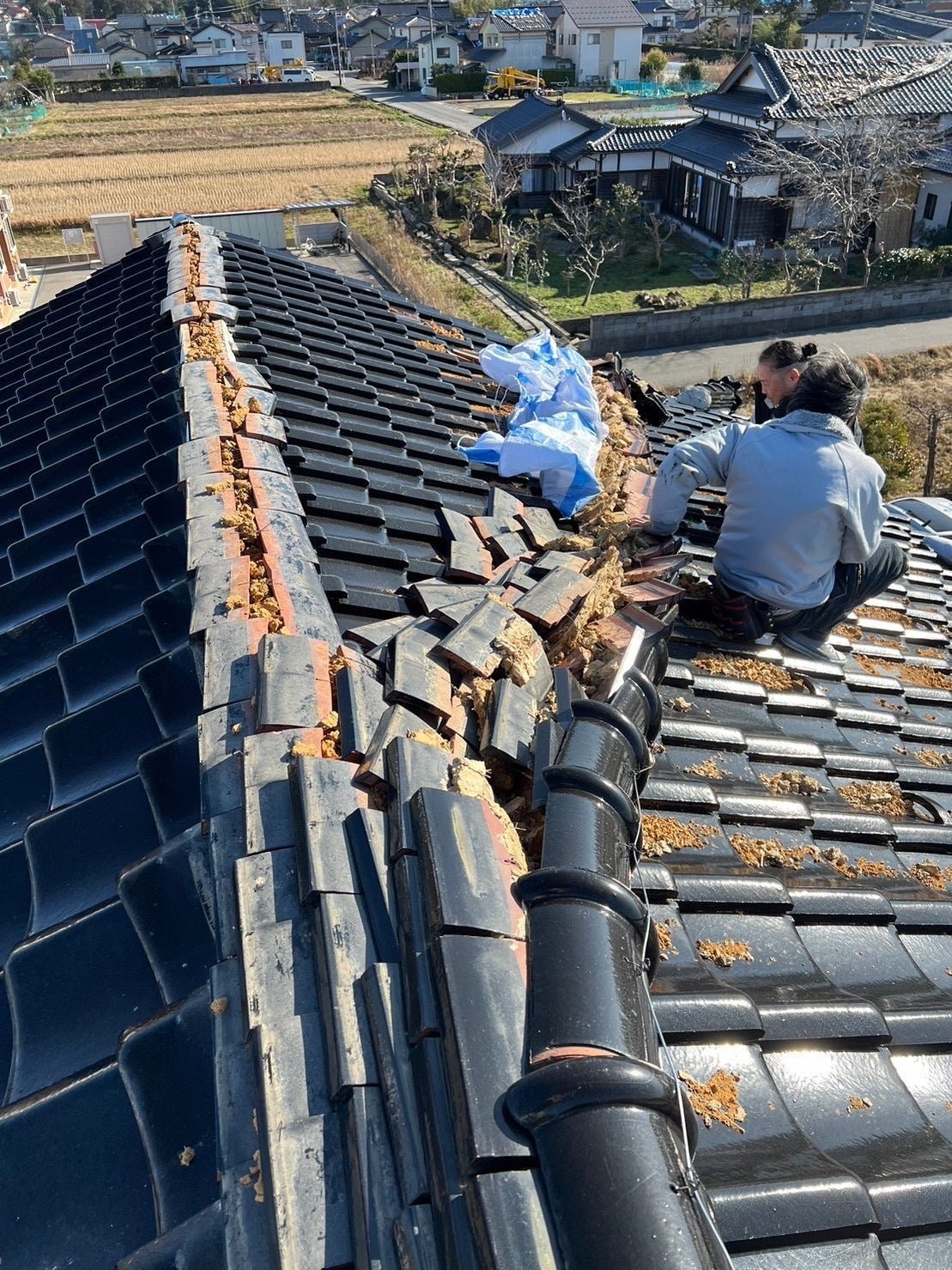 ▶ブルーシートで応急処置をしている画像