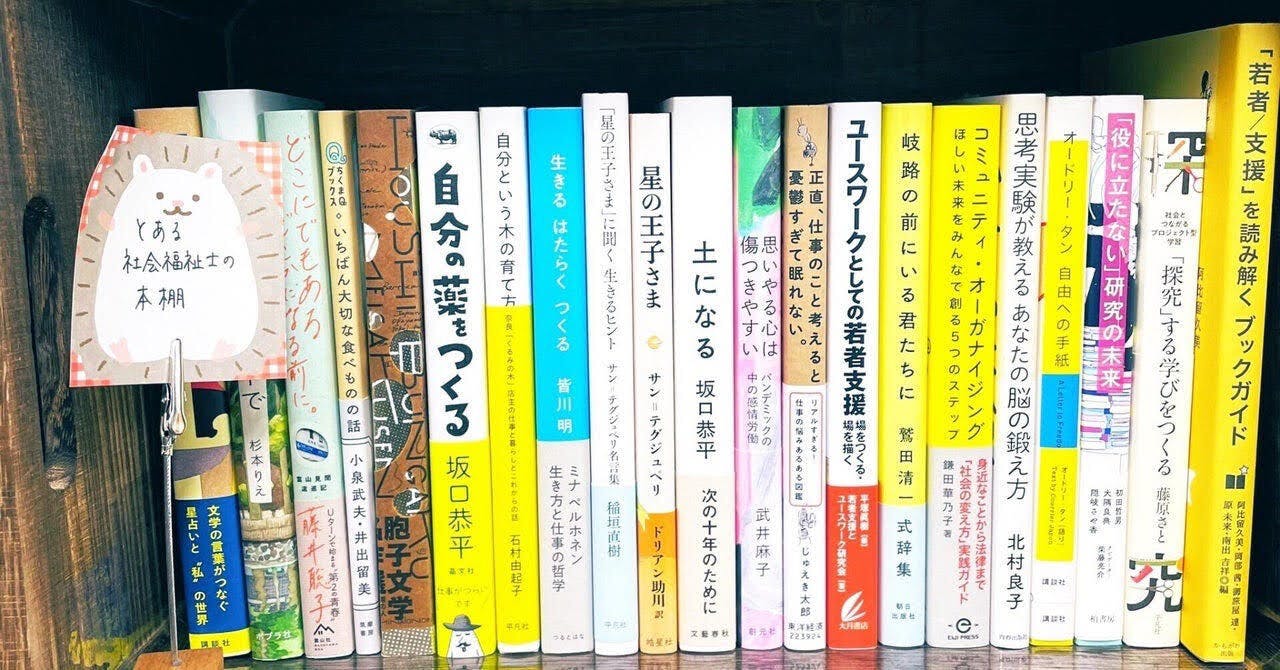 移動書店では木箱を使って本棚を作りあげているのですが、そのなかの一箱を「とある社会福祉士の本棚」としています。というのも、ハリ書房には社会福祉士がいるから(SNSでは図書委員長として時々現れます。)。