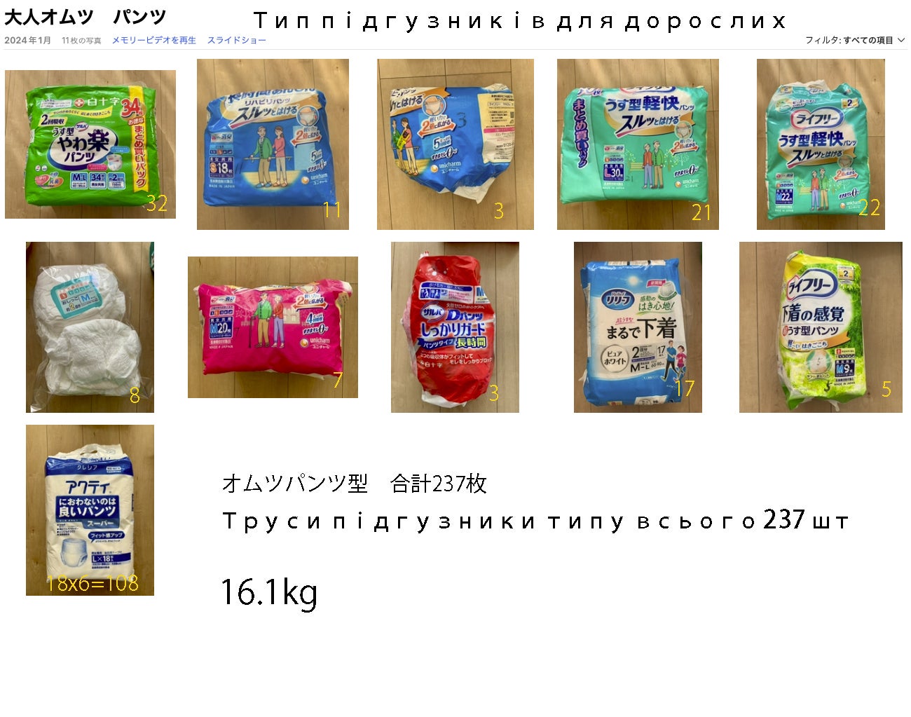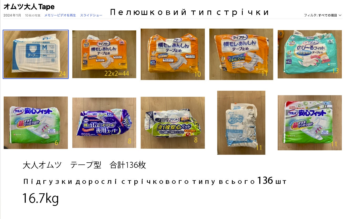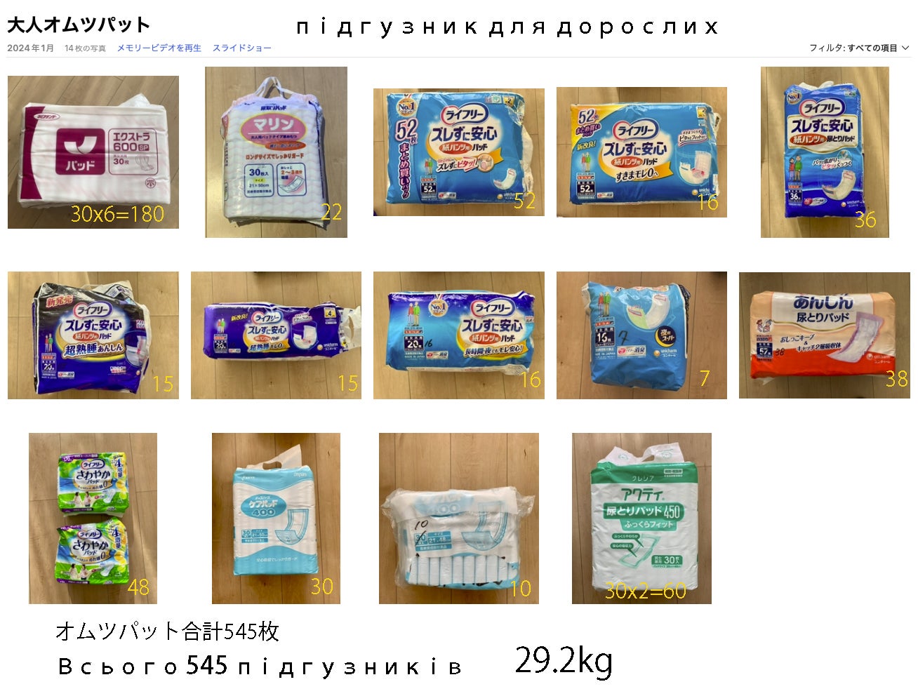 2025/06/16 20:012025/6/13に、皆様からご寄付いただいたオムツを発送しました。合計1852枚、99.4kg 13箱の段ボールを発送しました。ウクライナ大使館からご紹介いただいたユリアさんのご厚意により、皆様からお預かりした物資を、ウクライナ行きのコンテナに同乗させていただけることになりました。そのため、予定していた送料と関税がかからずに出荷することができました。杉並区の倉庫に搬入また、近所のウクライナ支援協力を頂いている、お菓子屋さんで集めていただいた募金は合計67,419円になりました。たくさんのご支援を本当にありがとうございました。Sumy州のアンナさんに、必要な物質をお聞きしたところ、「負傷者や火傷で傷ついてる人が多く、医療品が必要」との回答をいただきました。そこで、送料分と関税分として用意していた資金を医療品購入に利用し、チェストシール21枚(約10万円)と3Mの医療品約(1万円)を購入し、オムツと一緒に送りました。今回購入したフォックスチェストシール (弁付き)3M キャビロン(TM)非アルコール性皮膜 28ml 皮膚保護剤チェストシールは、昨年止血帯を購入させていただいたオーストリッチインターナショナルさんから手配しました。「チェストシールって何?」とご興味のお持ちの方は、URL動画からご覧いただくと戦争の現場で何が起きているかを少し想像いただけるかと思います。※一部、ショッキングな映像が含まれていますので、ご視聴の際はご注意ください。JP How to use Foxsealアンナさんから、下記医療品のリクエストがありましたので皆さまにも共有させていただきます。また、ユリアさんからも「医療品は非常に不足している」とのお話を伺いました。そのため、今後も引き続き資金を募り、必要な医療物資の購入を行っていきたいと考えています。2024/3/31に発送したオムツは、ポーランド在住で、ウクライナ支援家の坂本さん宛に送り、その後、坂本さんがウクライナへ再発送して下さいました。そのため、ポーランドからスームイ州までの輸送費として坂本さんにお支払いする予定の資金を保管していました。しかし、坂本さんのご厚意により、送料を坂本さんに負担していただきました。本当にありがとうございます。そのため、その資金の一部は、医療品の購入に使わせていただきました。私たちが送ったオムツを運ぶアンナさんと坂本さん終わりが見えず長引く戦争で、ウクライナの人は本当に疲れています。今後もウクライナへのご支援をどうぞよろしくお願い申し上げます。 もっと見る