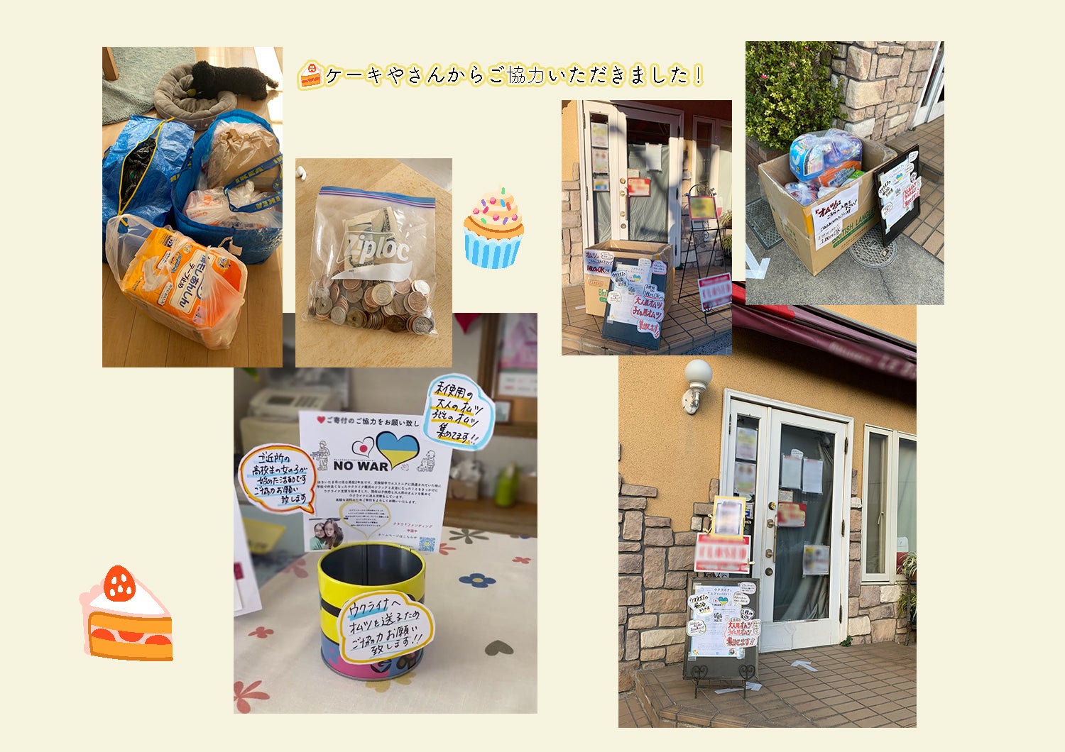 私は、まず地元の学校や在籍校、身の回りの知り合いに声をかけ、ポスターを掲示させていただき、未使用のオムツを集めることから始めました。近所のケーキ屋さんでは玄関前にオムツを回収ボックスとポスターを設置してもらい、お客様から沢山のオムツを寄贈いただきました。また募金箱も設置していただき、約一月間で¥11,046円ご寄付を頂きました。