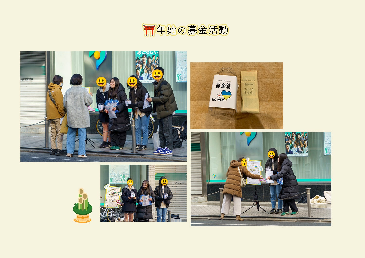 今年の年始には、中学時代の友人と恩師にご協力いただき、近所の神社近くで募金活動を行いました。約2時間という短い時間でしたが、こちらの声かけに立ち止まり戻って募金して下さる方も多く、¥19,466円ご寄付を頂きました。