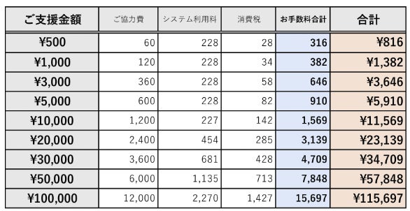 ※冒頭にありますように、このプロジェクトでは、支援者様にご協力費をいただくことで、プロジェクトオーナーの手数料の負担は一切なく、支援者さまからのご協力費(12%+税)により運営されています。
