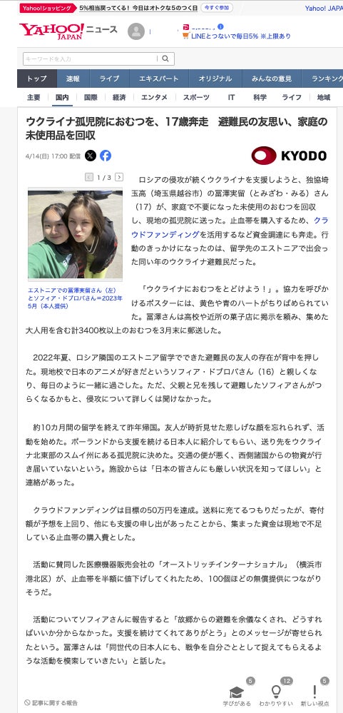 3/31のオムツ発送後、共同通信さんから取材を受けた記事が下記デジタル版で掲載されました!ぜひご覧ください。4/14(日)