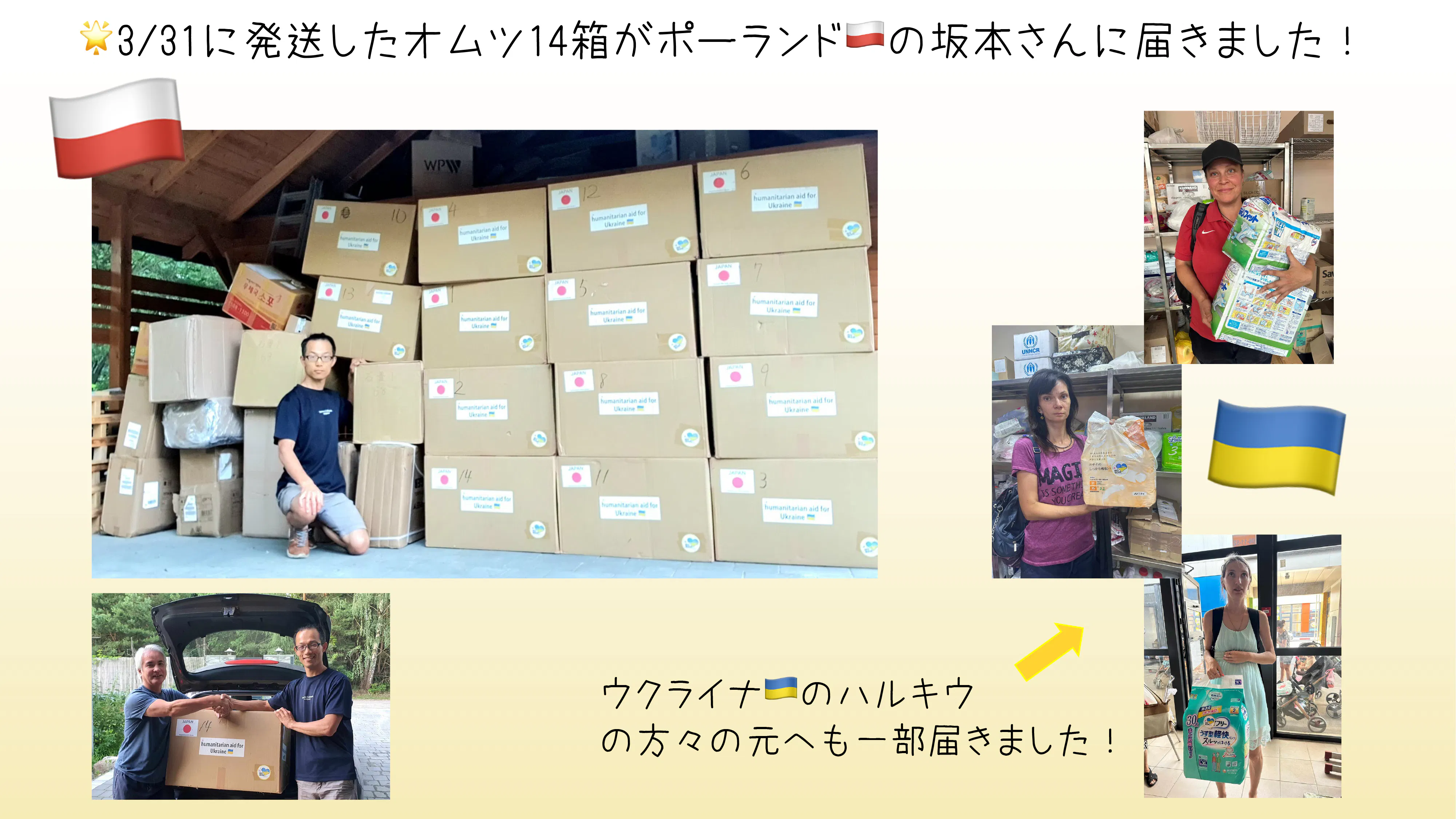 今月の上旬にポーランドでウクライナ支援をされている坂本さんの元にオムツが届いたのでご報告いたします!