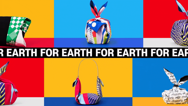 持続可能なライフスタイルのため風呂敷は、ペットボトル再生生地の上に美しいパターンプリントで製作されました。