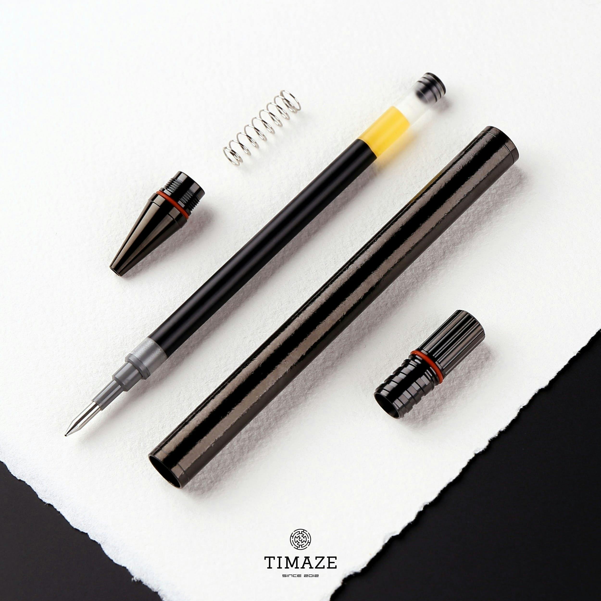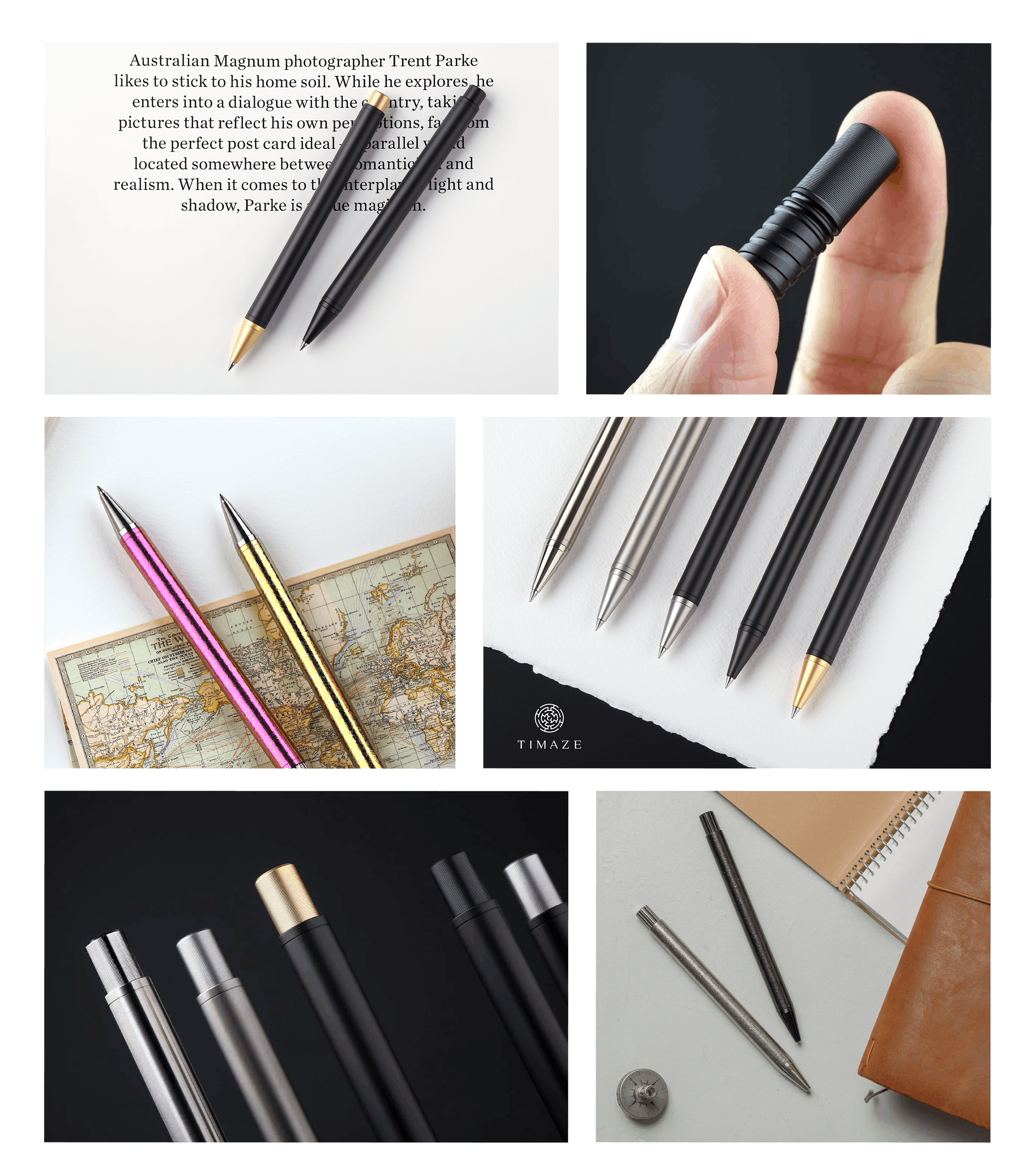 • TIMAZEの「Tシリーズ」の初プロダクトとして製作したチタン製ボールペン「TP1」は、パーツを極限まで少なくしたミニマルなデザインが特徴。