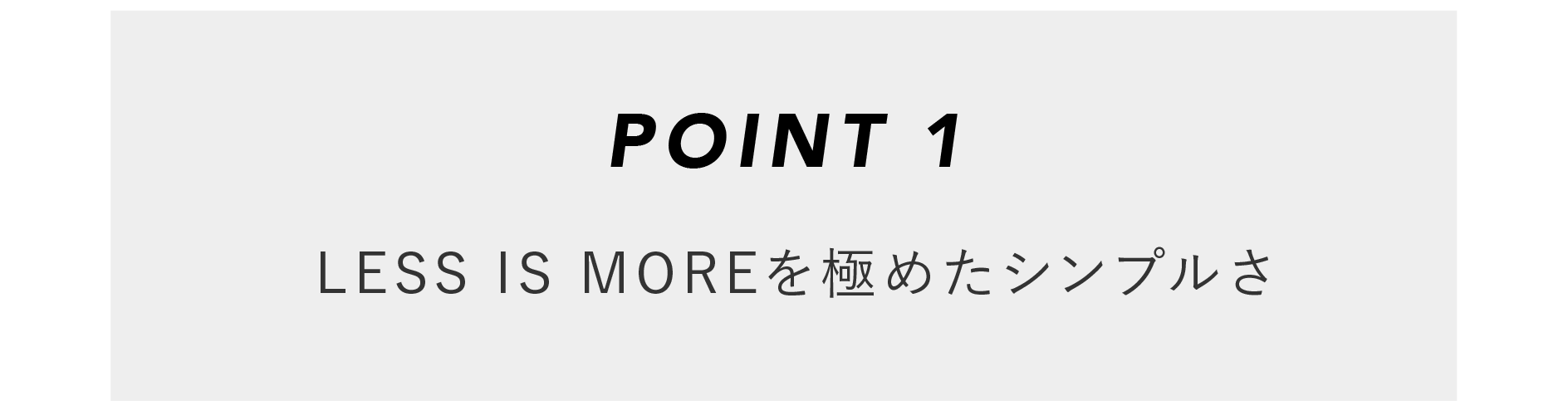 • 徹底的に無駄を完全に省いたシンプル・ミニマルなデザインが特徴。