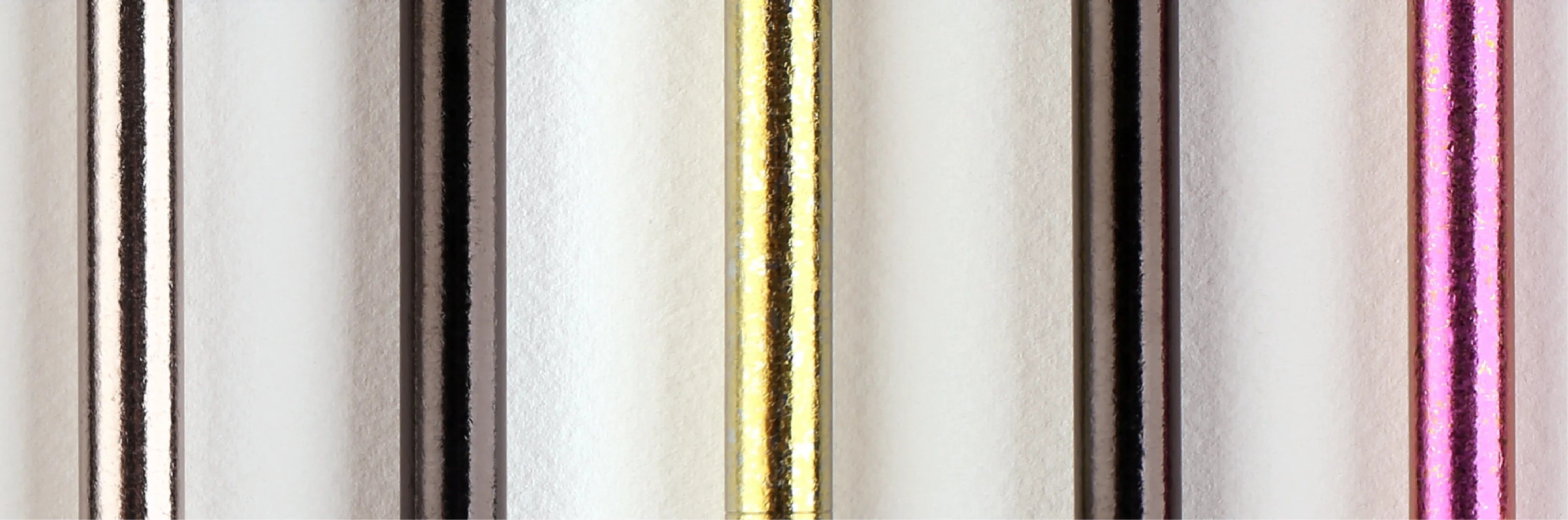 - チタンらしさをダイレクトに感じられるナチュラルチタン。金属感の強いありのままのピュアなシルバーは、美しい光沢が特徴です。