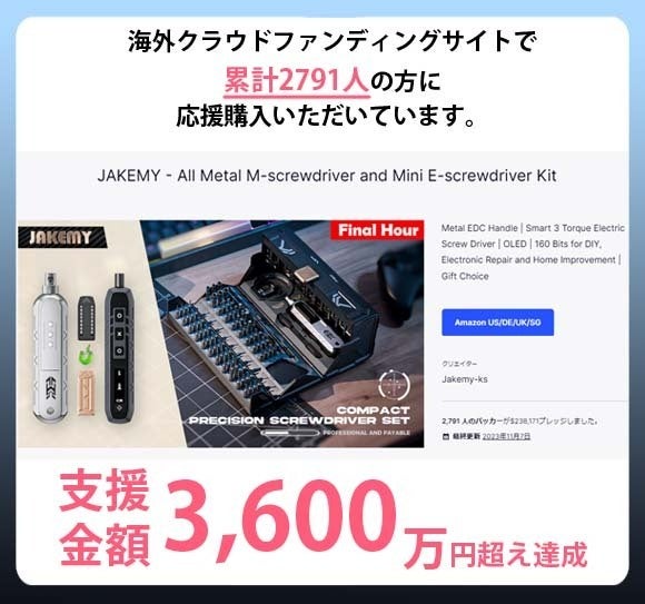 小型電動ドライバー「SmartUtech」は海外クラウドファンディングを通じて全世界2791人以上のサポーターに支持、購入されています。