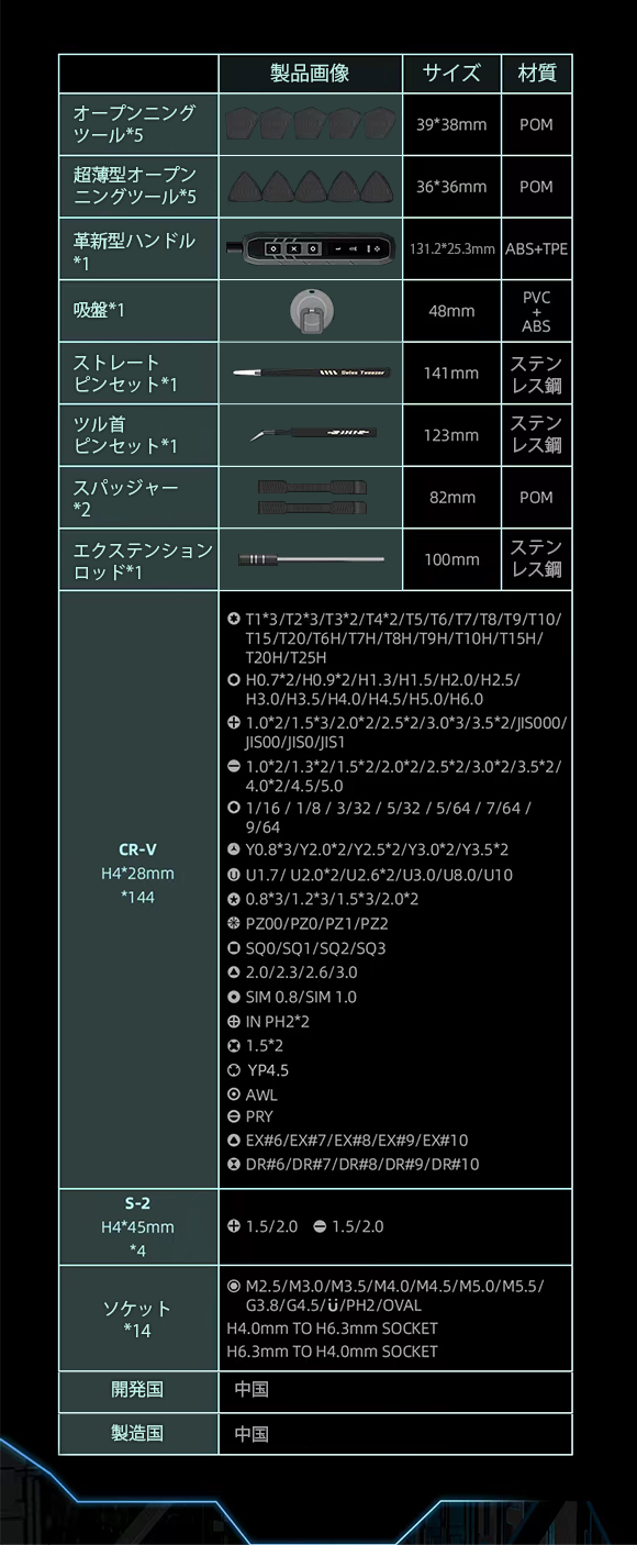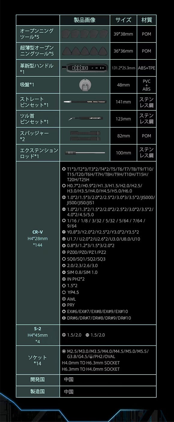 2.162種の多機能ビットを付属しており、様々なシーンに対応可能。