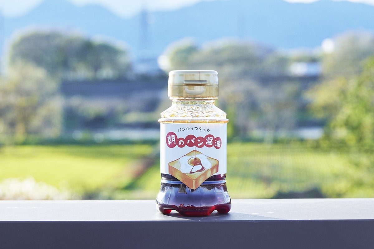 「パンからつくった 朝のパン醤油」はその名の通り、パンの耳が原料。通常、醤油は大豆、小麦、食塩からつくられますが、小麦の代わりにパンの耳を発酵させてつくりました。食欲をそそる香ばしさが魅力の、おいしい洋風醤油です。