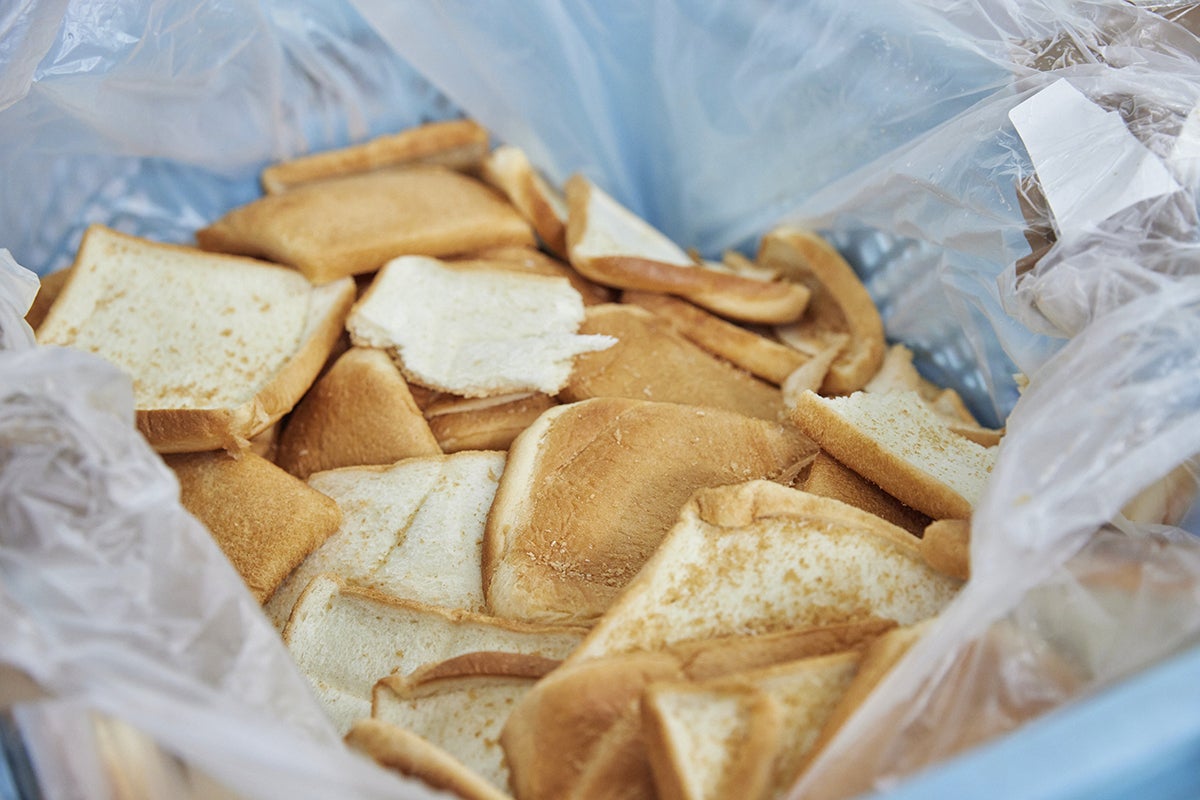 パンの耳。うまく発酵させるため細かく粉砕し、麹菌が活動しやすくする。