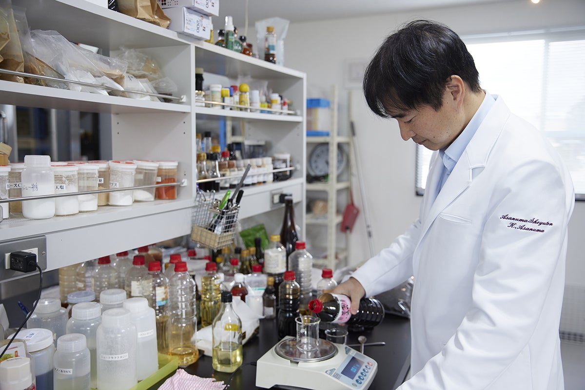 十数年ほど前から菌の研究をはじめ、アワ、キビ、ヒエなどさまざまな穀類を発酵させ、その違いを評価し、うまく発酵が進んだものは商品化もしてきました。エゴマの搾りかすからつくった「エゴマ醤油」も、こうした研究が実を結び生まれた商品です。この商品を開発したことで、小麦以外の原料でもおいしい醤油にできると確信しました。