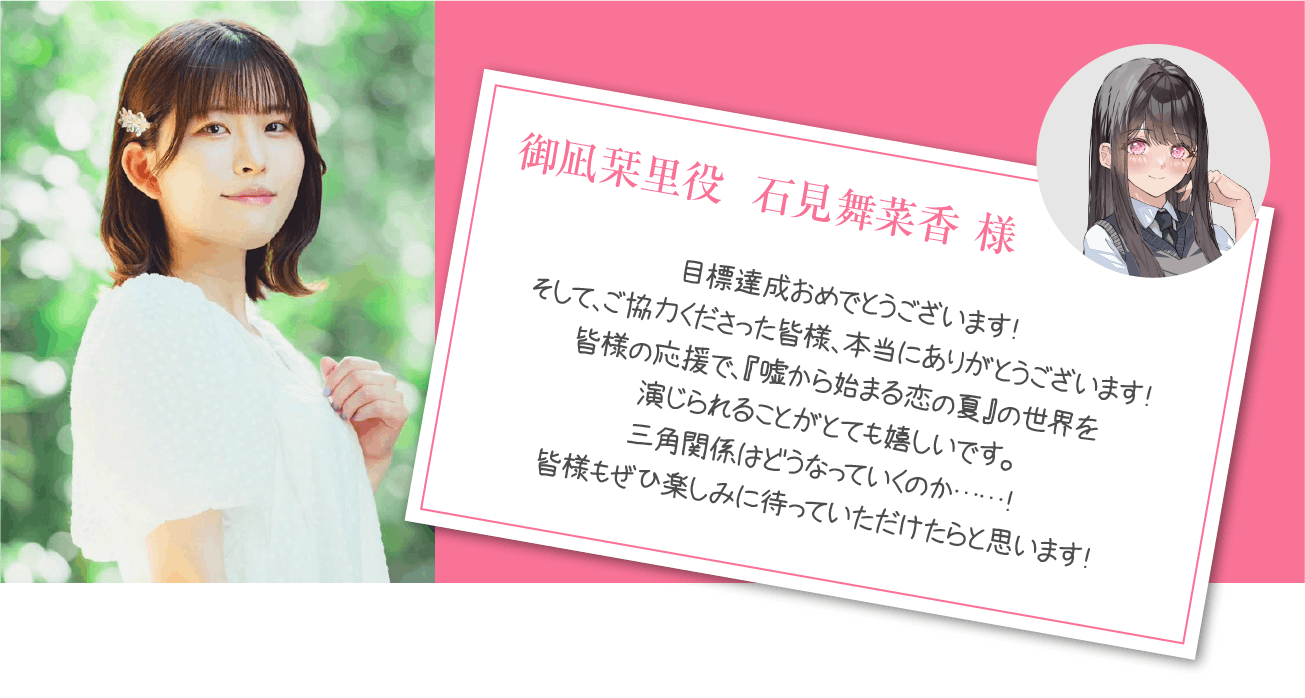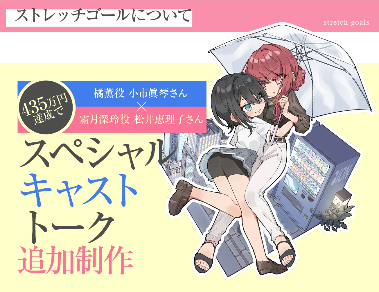 引き続き「『嘘から始まる恋の夏』新作百合ドラマCD制作プロジェクト!」を何卒よろしくお願いいたします。