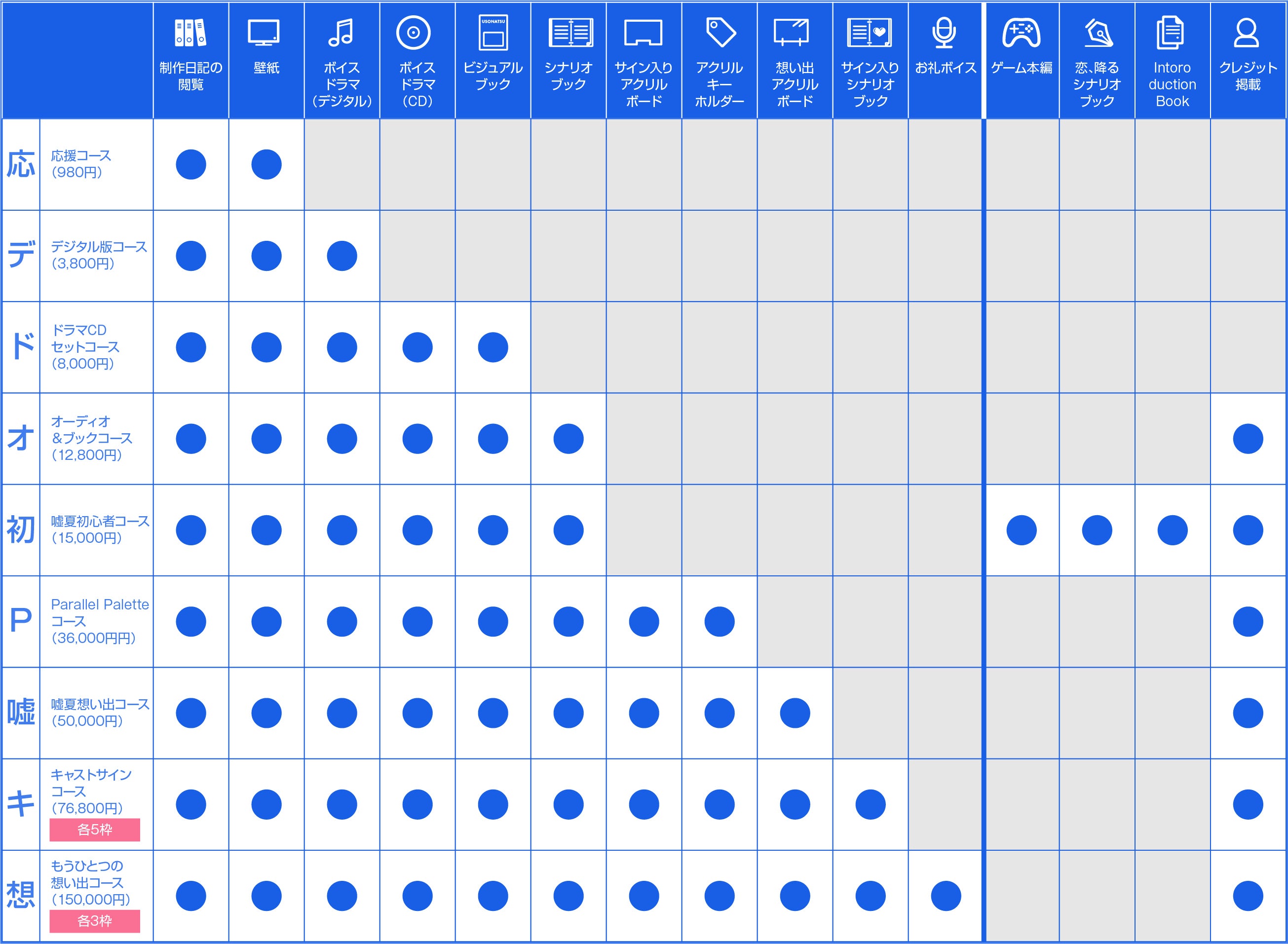 「嘘夏の想い出コース」の内容に加えてキャスト2名のサイン入りシナリオブックと、キャラクターからのお礼ボイスが追加になります!