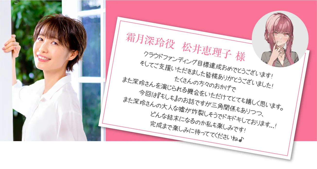 一度完結した作品の派生作品であること、かつ長尺のボイスドラマという新たな挑戦であるために、クラウドファンディングという形式にて皆様にご支援をお願いさせてください。