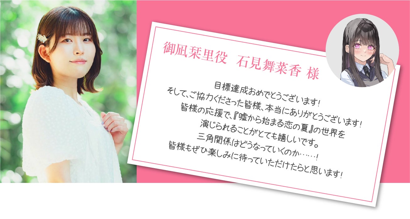 クラウドファンディングで皆様にご支援いただいたことから始まった『嘘から始まる恋の夏』は、昨年9月にリリース。