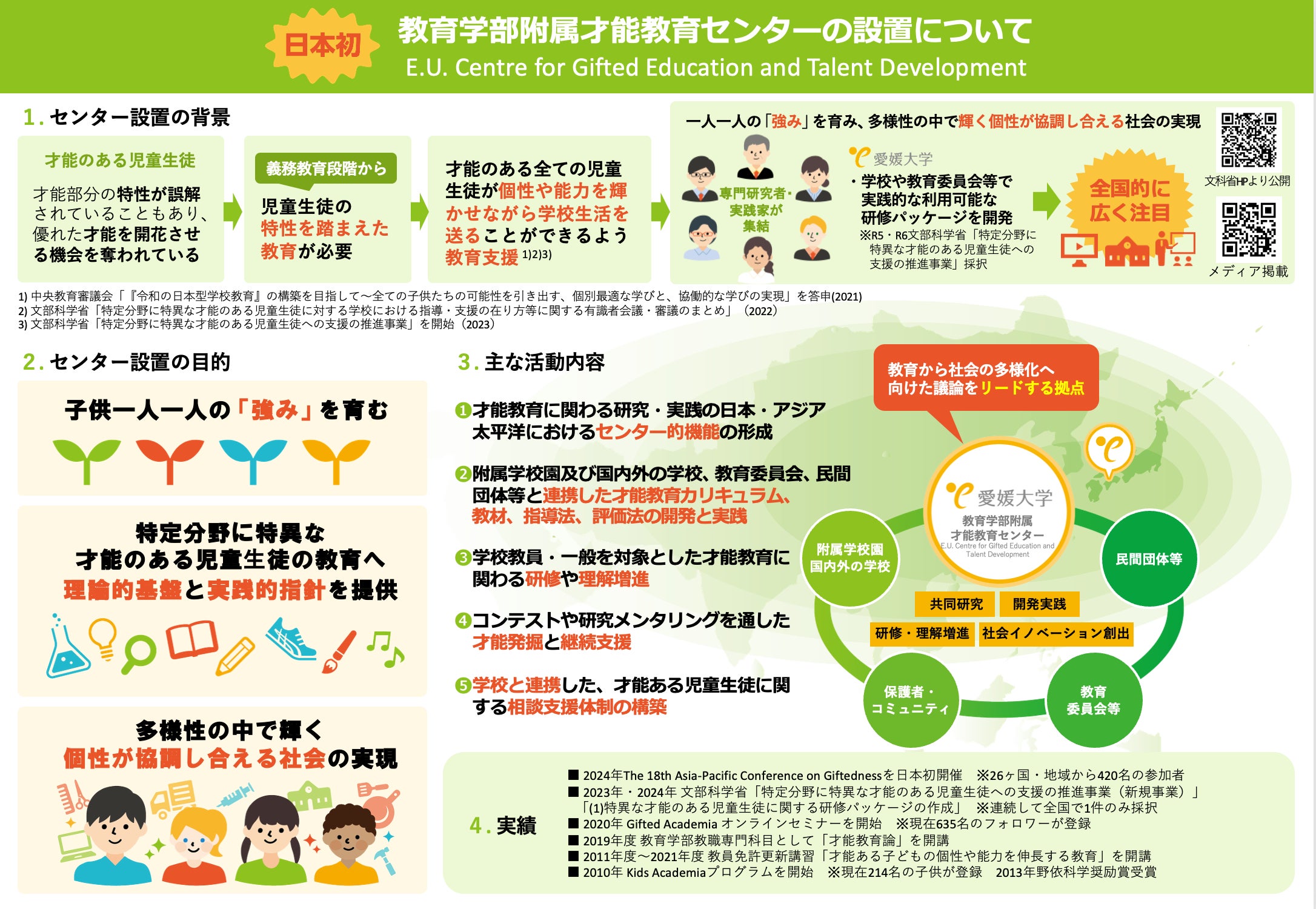 令和7年4月1日に、愛媛大学教育学部の附属教育研究施設として、「才能教育センター(Centre for Gifted Education and Talent Development)」が設置されました!