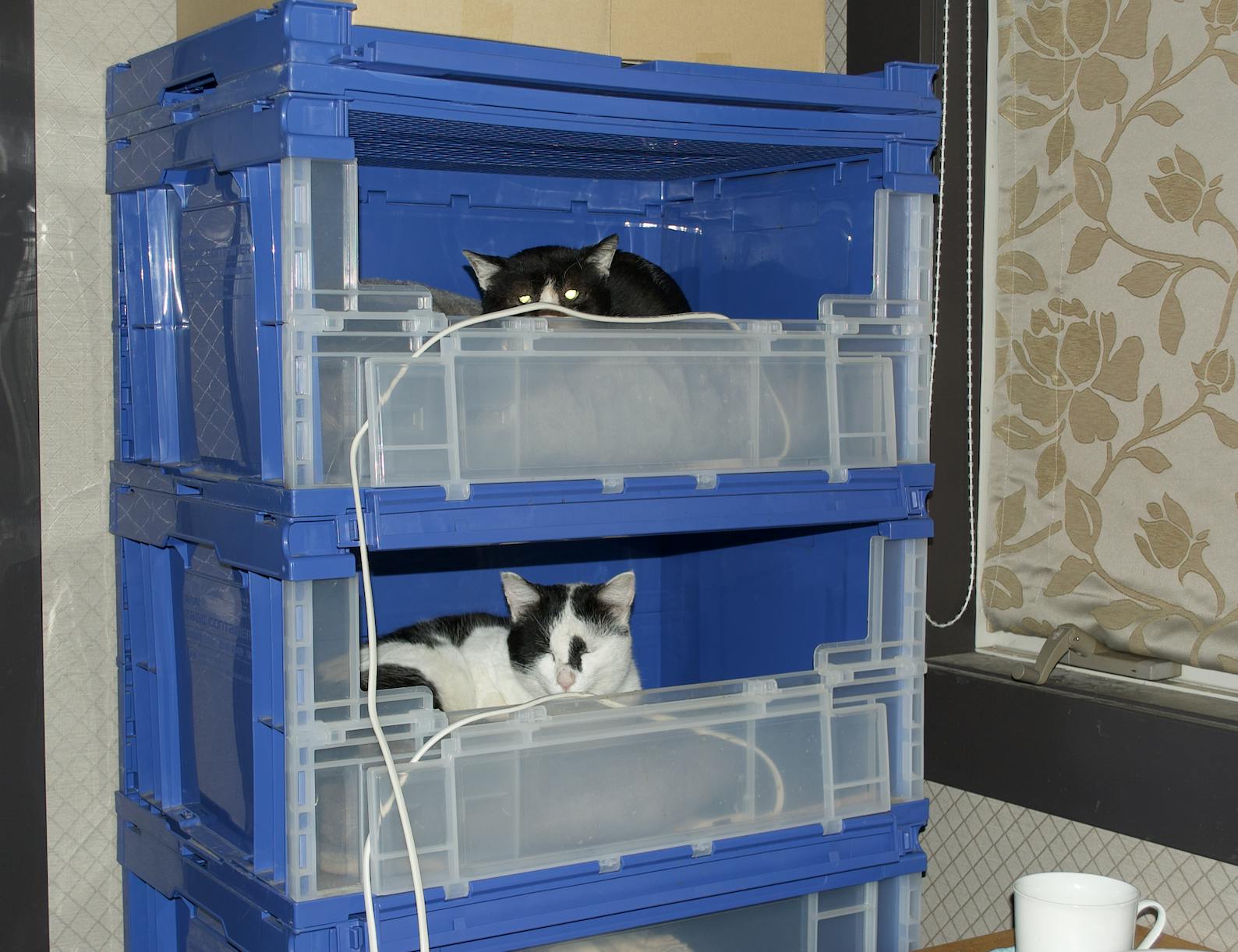 寒い日は,いつでも部屋に入って来れるようにしています。