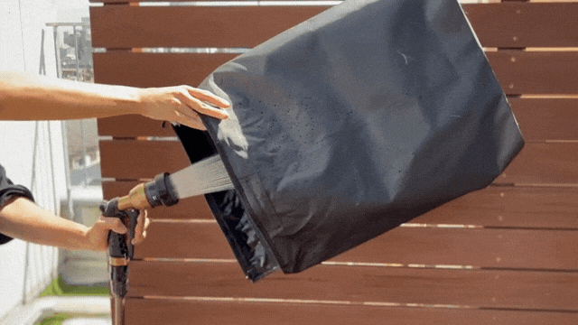 バッグ表裏にはpvcコーティングを施した耐水素材を使用。それらを圧着させることで縫い目をなくし、嵐にも耐える耐水性を実現しました!