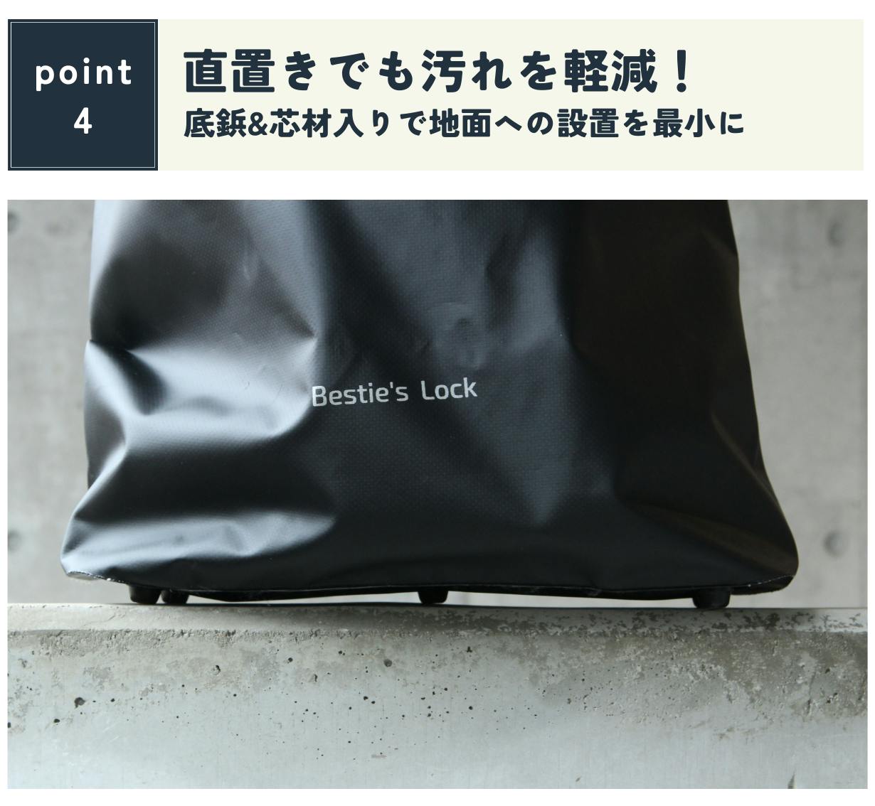 直置きした時に気になるバッグの底部の汚れ・濡れ・擦れを防ぎつつ、安定感もUP!