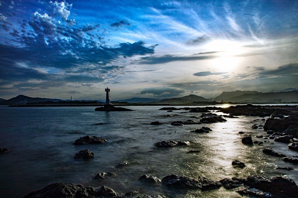 梅雨明けごろの夕刻、奥東海の岩場から市街地方面を写した1枚。