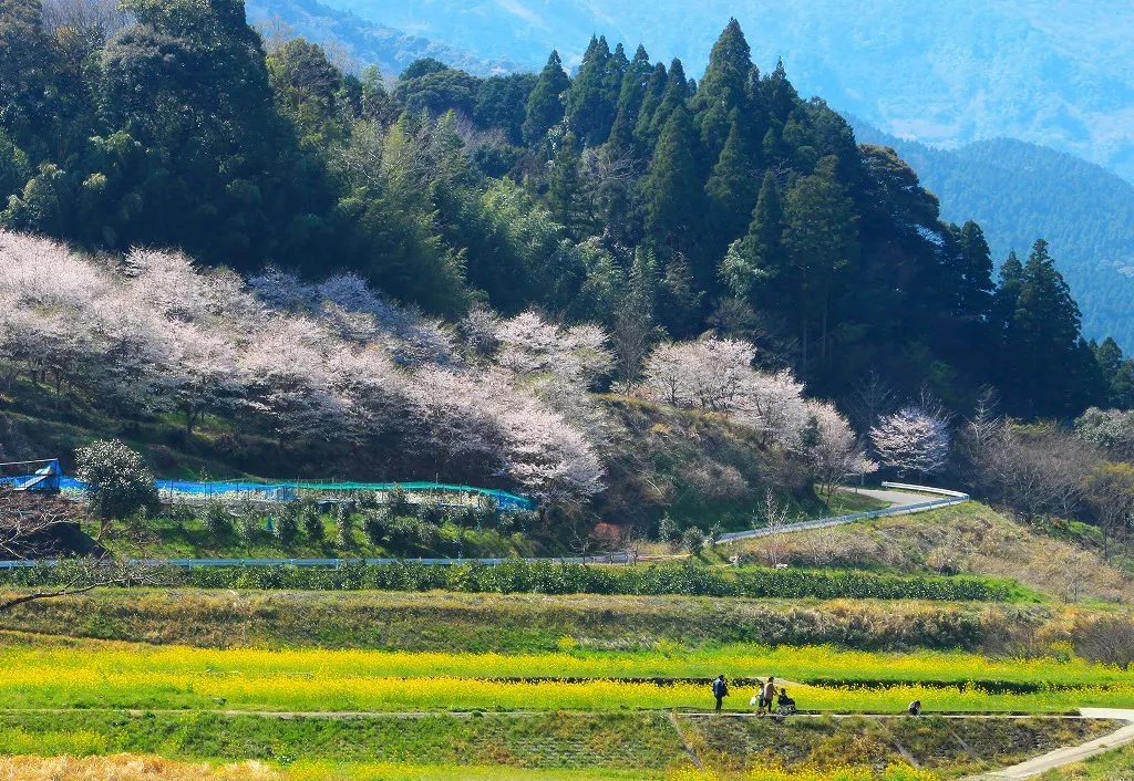 その完成を記念し、地元の人たちが橋の上流、五ヶ瀬川沿いの水田に菜の花を植え始めたのが最初でした。今では、市内有数の菜の花の名所になっています。