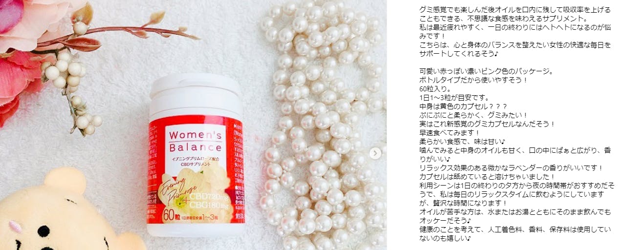 Women's Balanceはイブニングプリムローズ食用ラベンダーを含む、CBDサプリメントです。