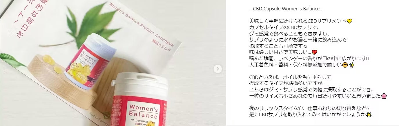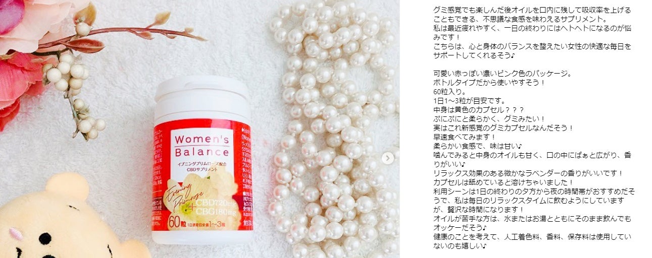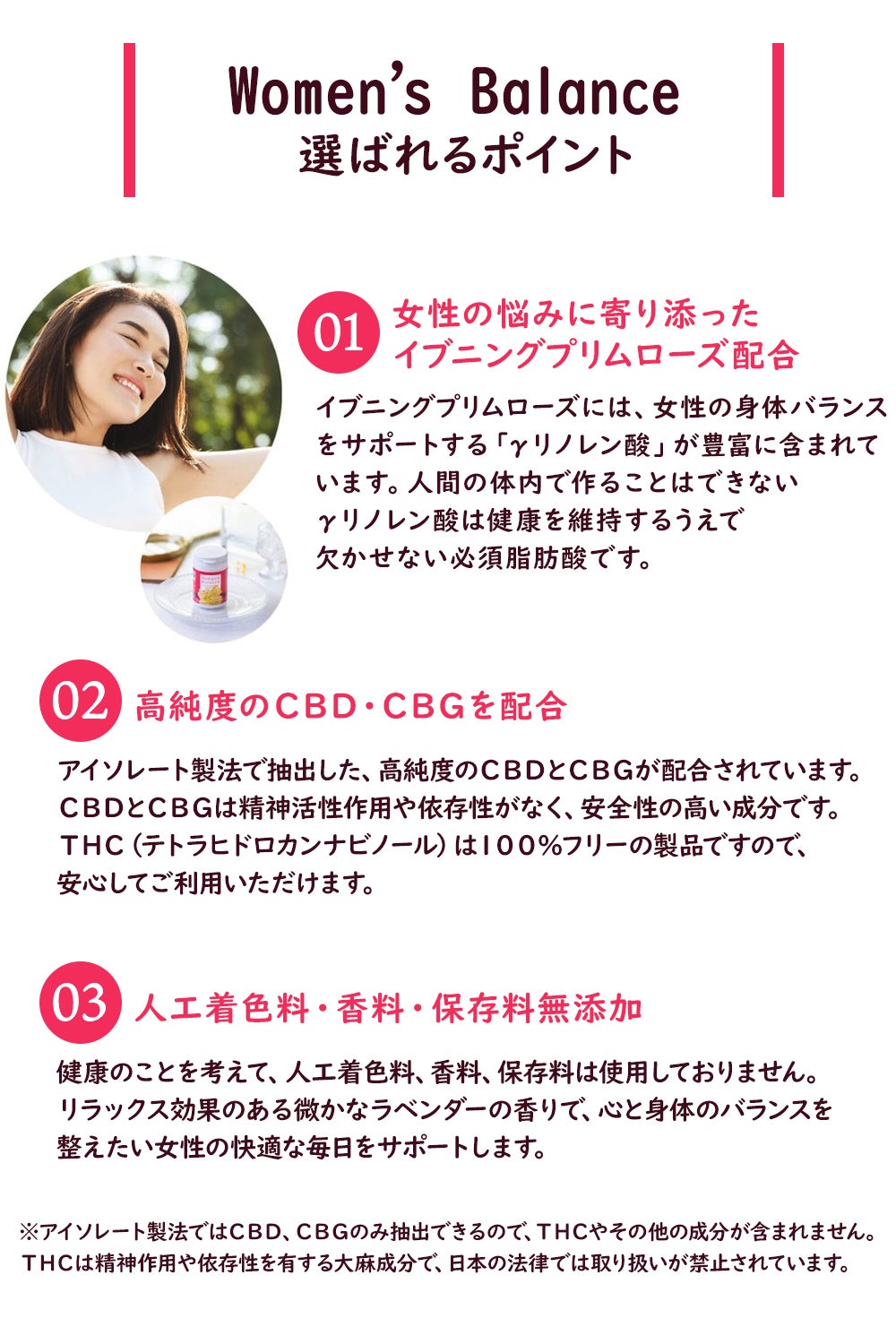 Women's Balanceはイブニングプリムローズと食用ラベンダーを含む、CBDサプリメントです。
