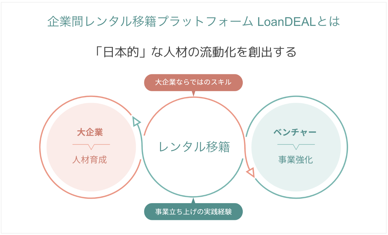 「レンタル移籍」とは、大企業人材が一定期間ベンチャー企業で働く仕組み。