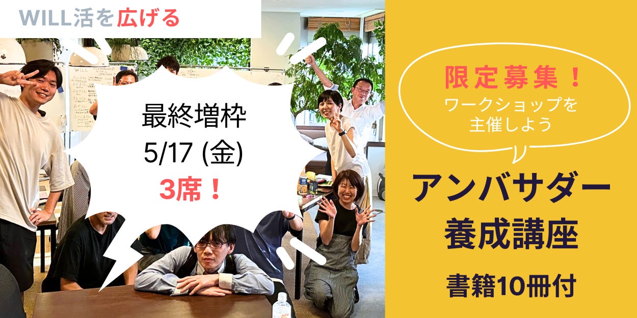 すでに書籍を買っていただいている方もいらっしゃると思いますが、ぜひ「アンバサダー」になってWILL活を広げる仲間になりませんか!?