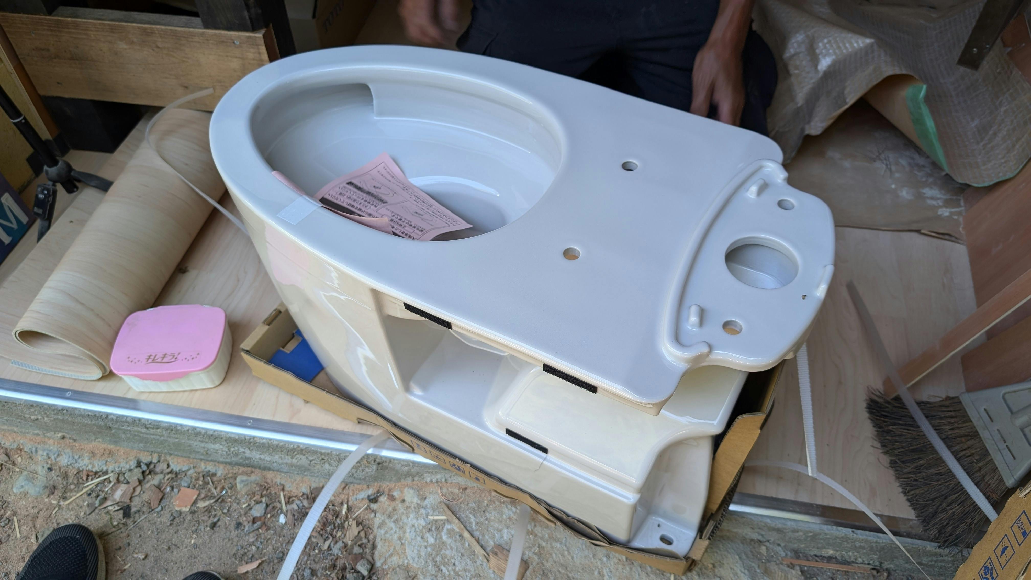 2024/08/19 12:00大便器も取付け完了です!今回、男子便の便器の色はグレーを選択しました。ただ、あまりグレー感がなく普通の白い便器にしか見えませんね(笑)押ボタン式でウォシュレット温便座です。流し水は手前と奥側両方から同時に出てきて洗浄力強そうです! もっと見る