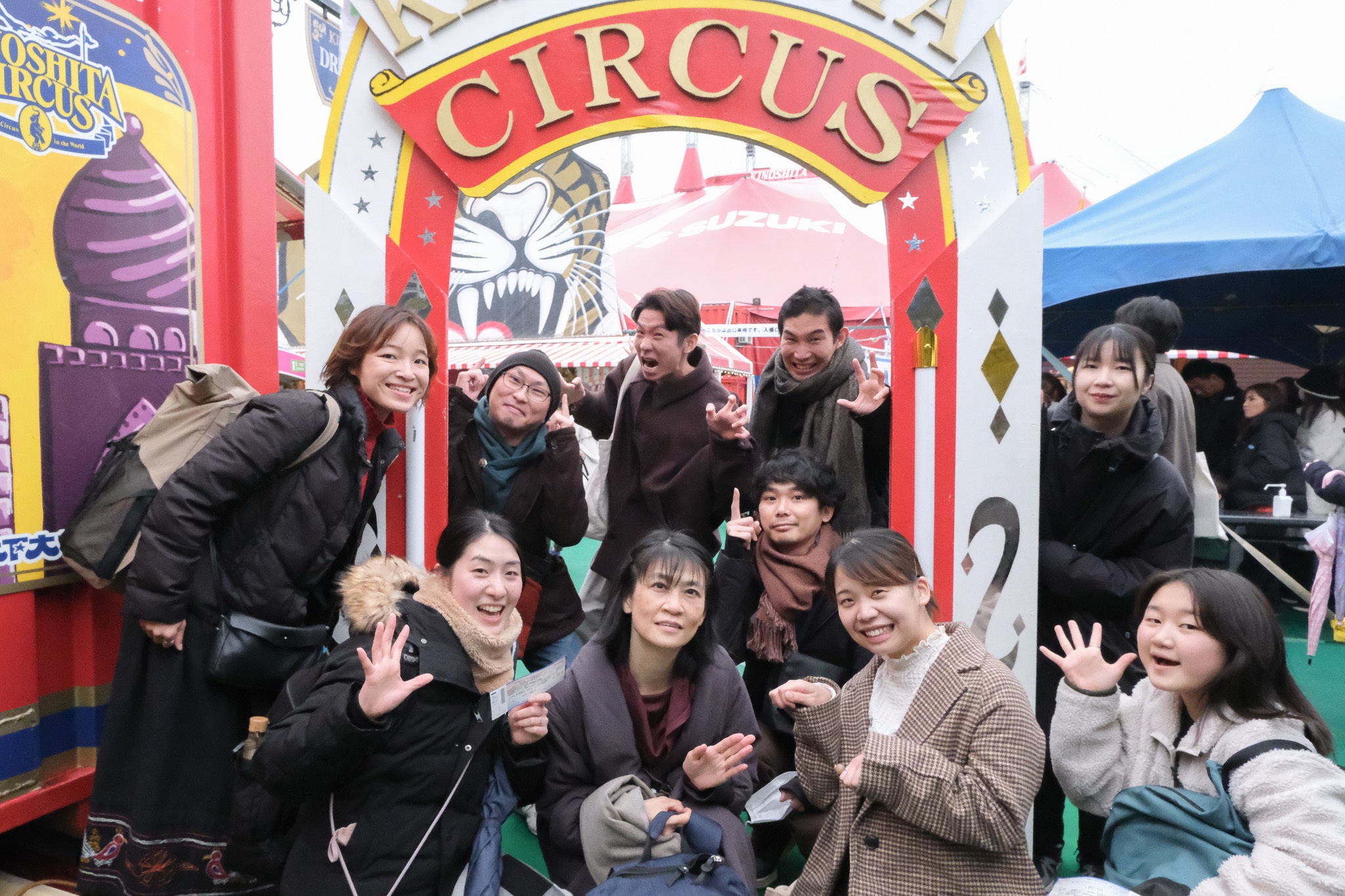 所沢出張公演の出演者で、サーカスを見に行きました。これまで3作品、サーカスに関する物語を上演してきましたが、実際にサーカスを見に行ったのは今回がはじめてです!赤と白の大きなテントを見つけた時のワクワク感、テントの中に広がる妖しくも美しい世界、「おおおっ!」と歓声をあげたり笑ったり、肩ひじ張らずに楽しめるパフォーマンスの数々…実際に足を運ばないとわからないことがたくさんありました。木下大サーカス エンディングの様子今回のサーカス体験を経て、私たちの「流れ星サーカス団物語」もより良いものになる気がしています。そんな気合の入った私たちの公演に、是非足をお運びください!クラウドファンディングでの応援もどうぞよろしくお願いいたします。
